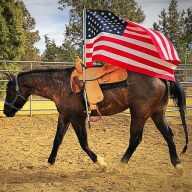 Kat is an 11 year old AQHA quarter horse mare. She was under weight, covered in rain rot and her hooves were very overdue for a trim. She was apprehensive about people as well. I got her vaccinated, hooves trimmed and dewormed the first week she was here. She gained great weight in a short time and a few baths cleared up her skin condition.
